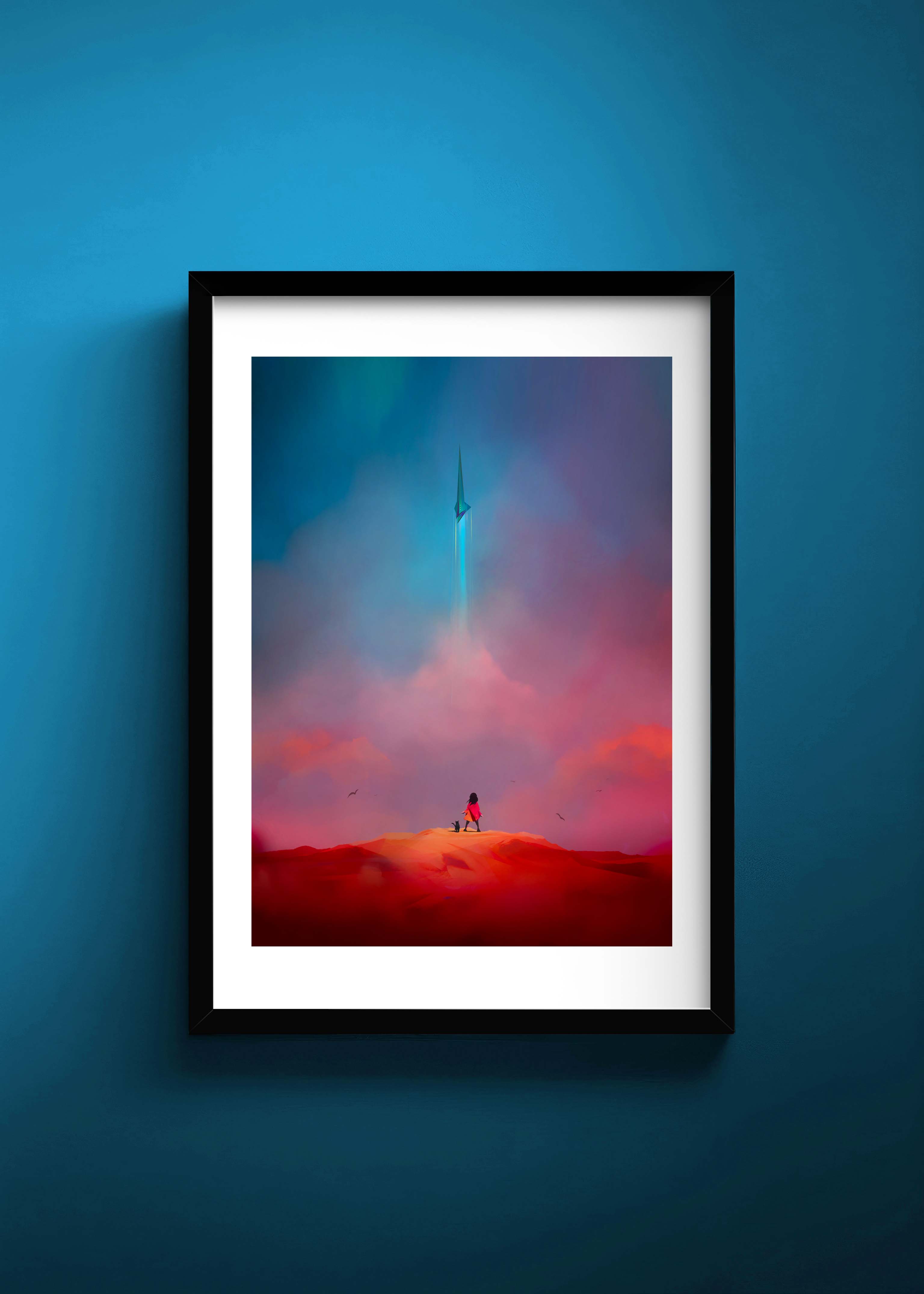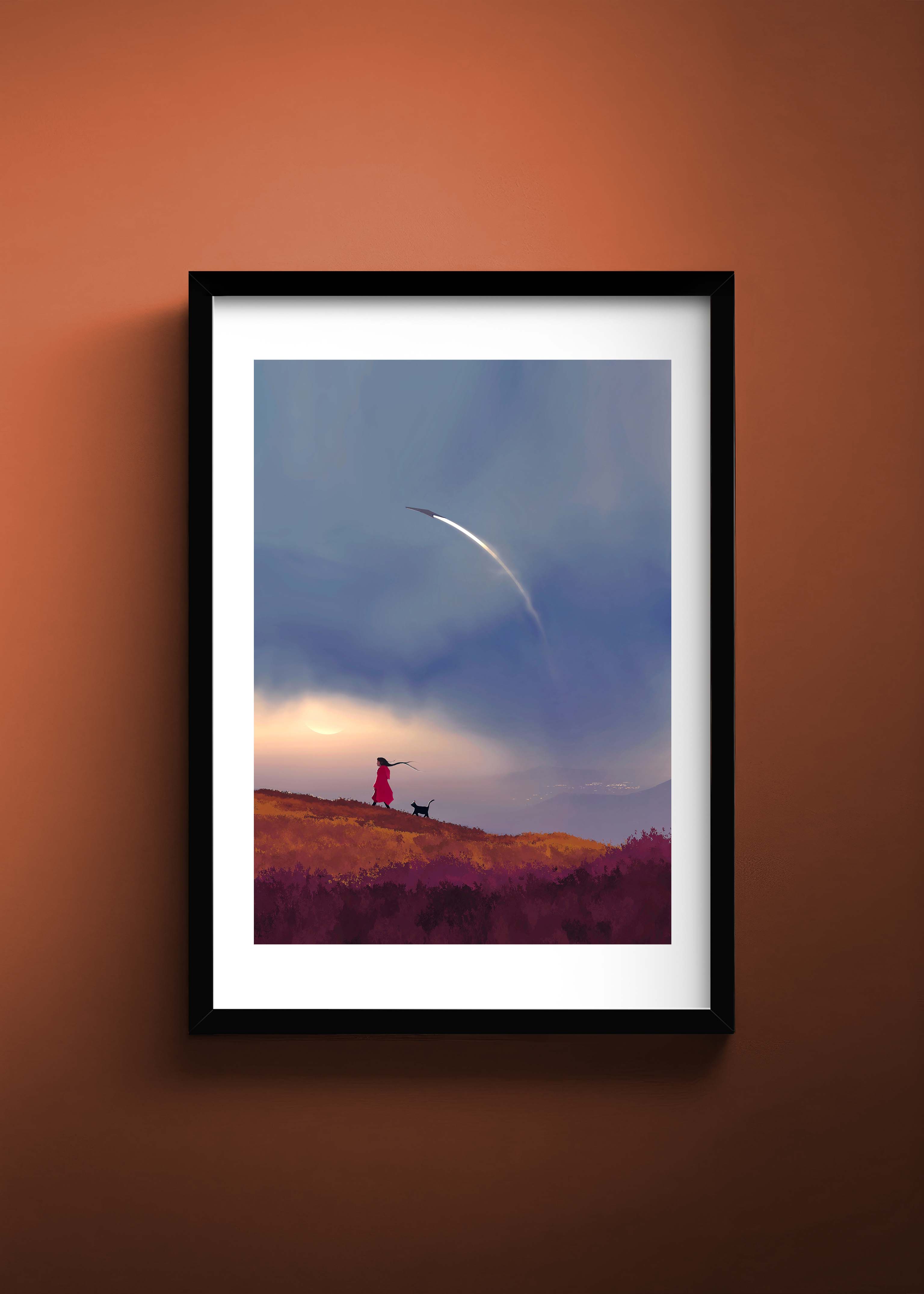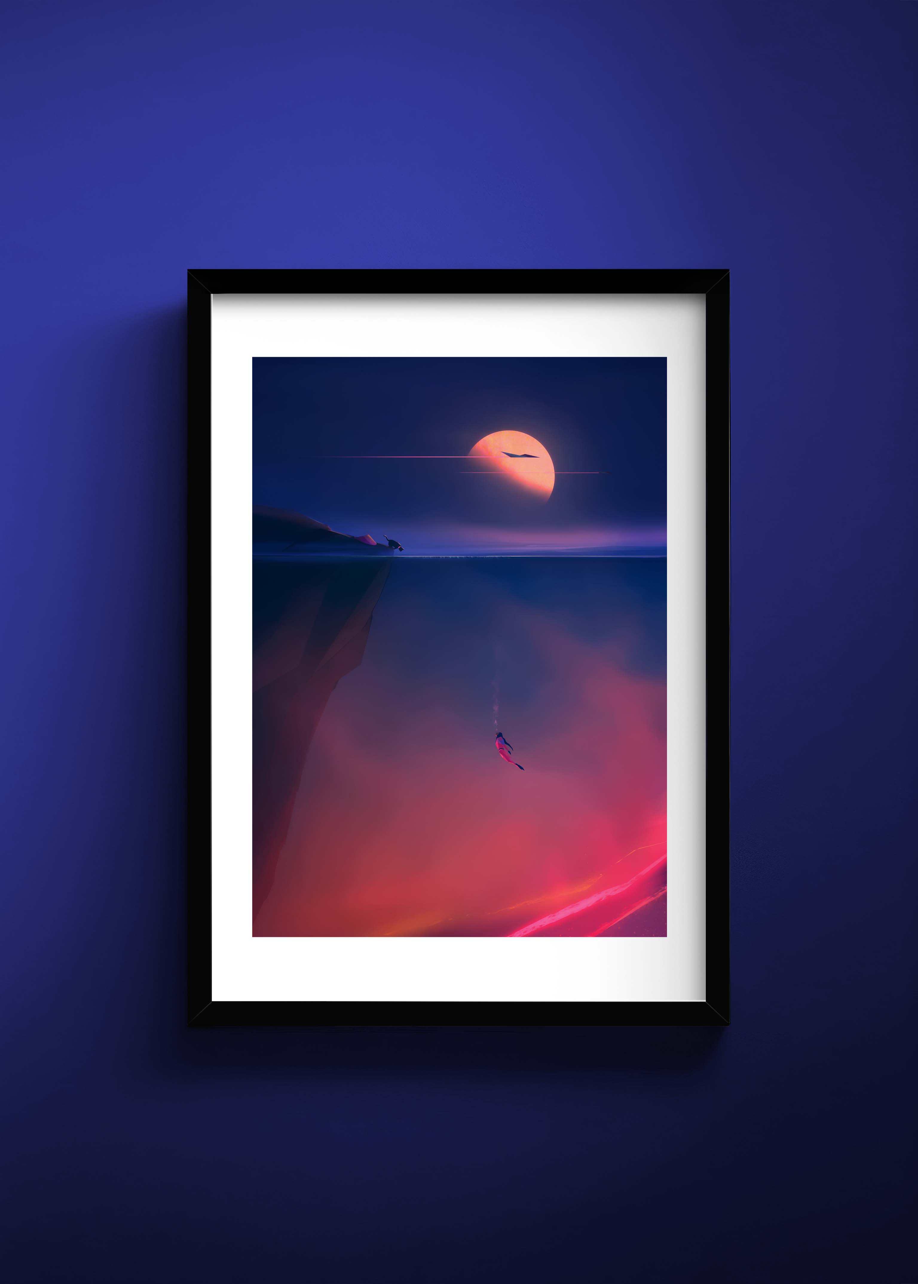 Unframed. You will only receive the print, the frames are shown for decorative purposes.
